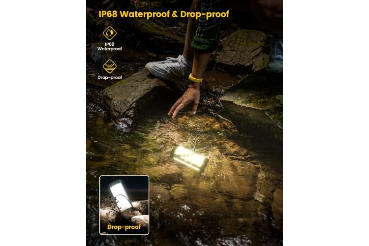 [𝐃𝐢𝐬𝐞ñ𝐨 𝐚 𝐍𝐢𝐯𝐞𝐥 𝐒𝐮𝐩𝐞𝐫] Diseñada para entornos difíciles, esta linterna camping tiene una clasificación IP68 de resistencia al agua hasta 1,5 metros, resiste caídas de 40 pulgadas y sigue siendo visible en condiciones meteorológicas adversas. Esta lampara camping también incluye un modo SOS para emergencias, ideal para cortes de electricidad y uso en exteriores.