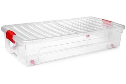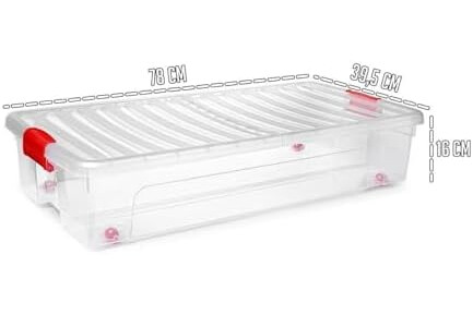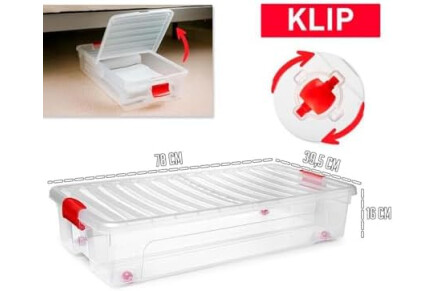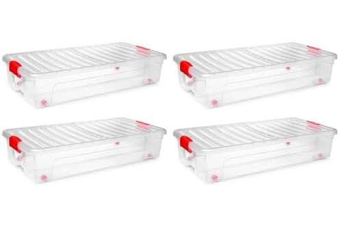 AC - Pack de 4 Cajas de Almacenamiento modelo KLIP bajocama - Fabricado en Plástico - Capacidad de 35 Litros - Cierre hermético y Tapa abatible - 16 x 39,5 x 78 cm