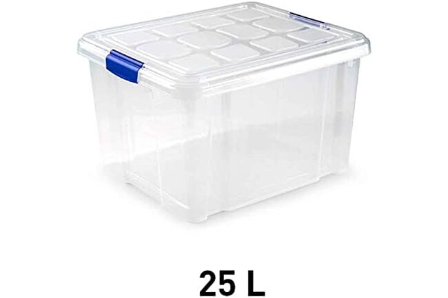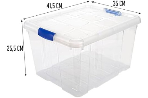 AC - Caja de ordenación de plástico transparente nº 2. Contenedor para almacenar juguetes, libros, ropa, mantas. Capacidad 25 litros. Dimensiones aprox.: 25,3 x 42,3 x 35 cm