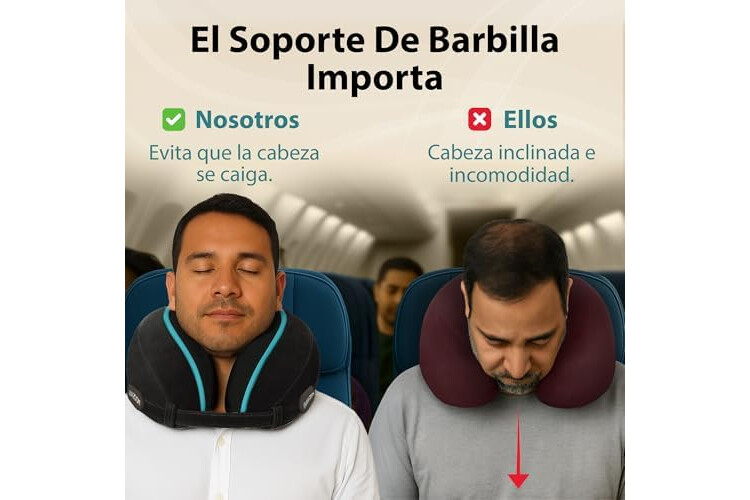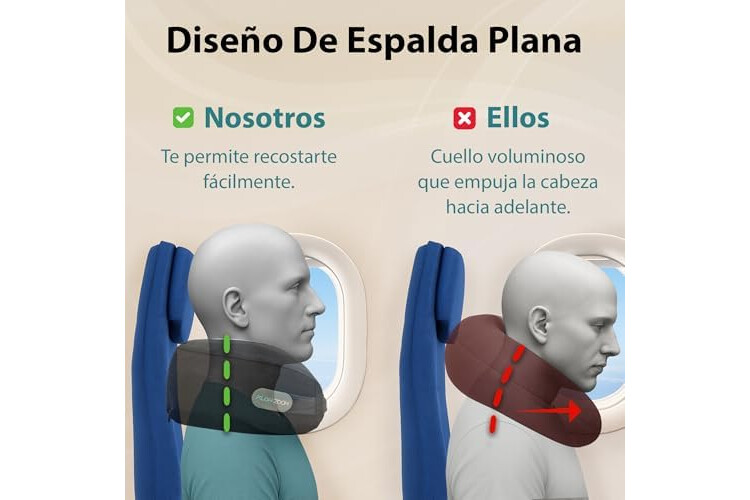 Sin inclinaciones incómodas: El soporte de 360 grados y la parte trasera extraplana del cojín de viaje evitan que tu cabeza se incline hacia adelante.