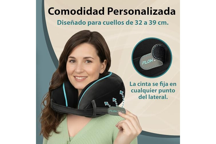 Confort ajustado a ti: La espuma viscoelástica se adapta a tu cuello, con un cierre autoadherente que permite un ajuste ilimitado.