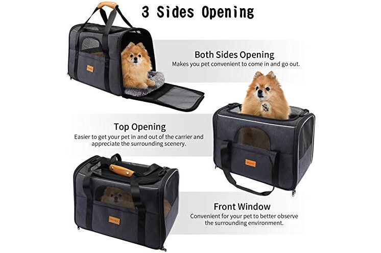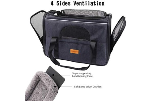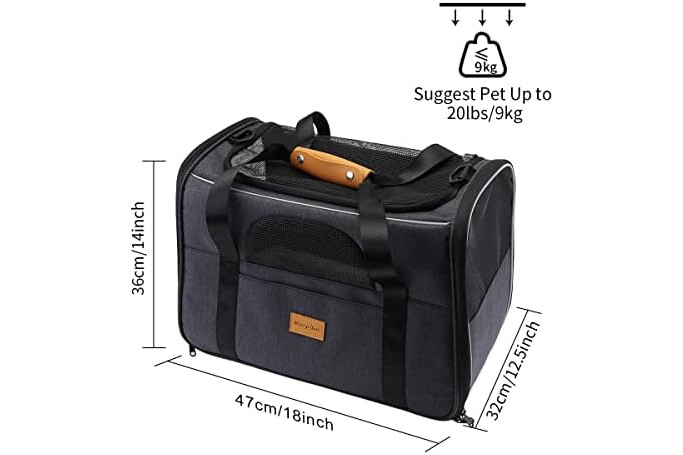 PRÁCTICO Y PORTÁTIL: El tamaño del este producto es: 18*12.5*14 inch, recomendado para mascotas hasta 20 lbs. Viene con un tazón azul plegable como regalo entra y un cojín blando. Con esta bolsa ligera, puede llevar su mascota a cualquier lugar, y deja que su y su mascota tengan un viaje maravilloso y feliz.