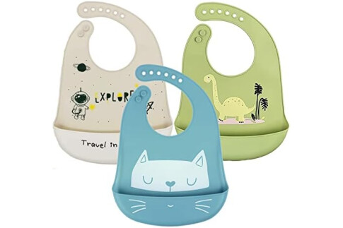 SLOSH Baberos Silicona Bebé Impermeables Flexible Suave de 6 Meses a 6 Años 1 año 2 años Grande Ajustable para Niño Unisex