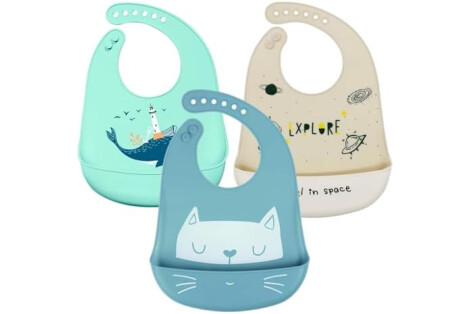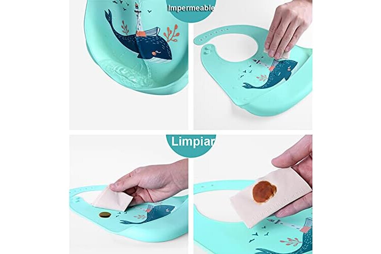 SLOSH Baberos Silicona Bebé Impermeables Flexible Suave de 6 Meses a 6 Años 1 año 2 años Grande Ajustable para Niño Unisex