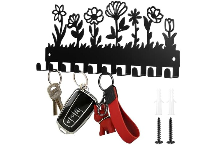 Estampado floral, moderno y versátil: El llavero presenta un moderno estilo negro con estampados florales. Práctico y decorativo a la vez, añade un toque moderno a tu hogar y combina con una variedad de estilos de decoración.