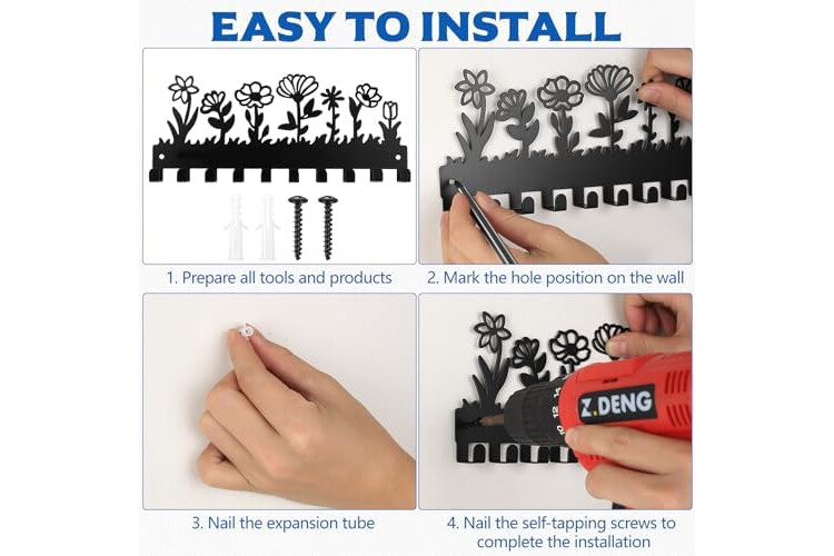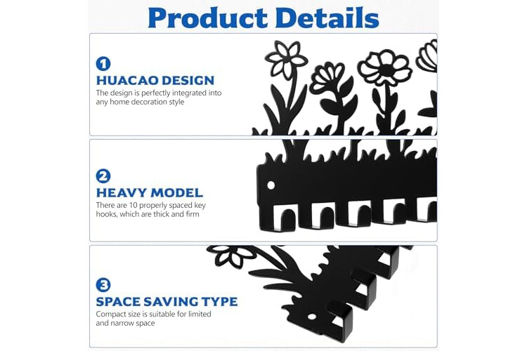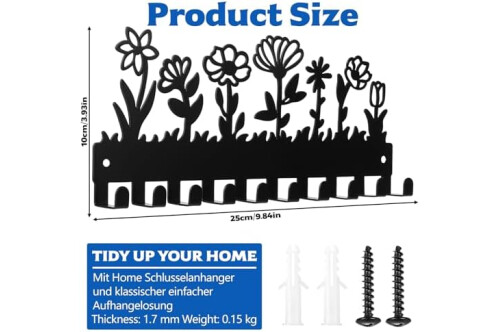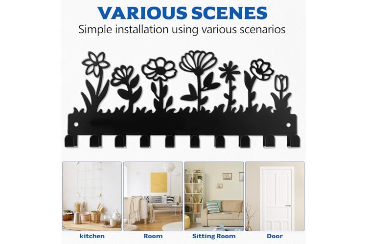 10 ganchos: El llavero cuenta con 10 ganchos para colgar llaves, abrigos, paraguas, correas de perro, herramientas de jardinería, carteras, ropa, adornos, bolsos, toallas, accesorios, cepillos, herramientas y otros artículos.