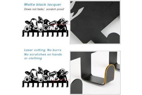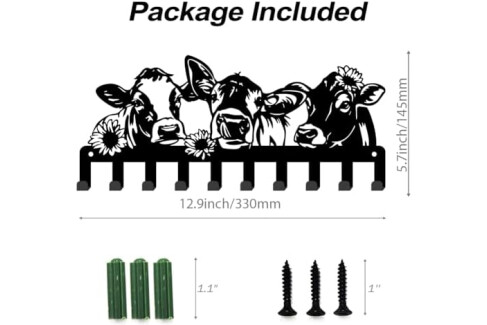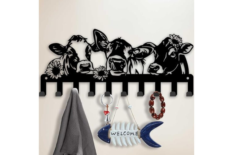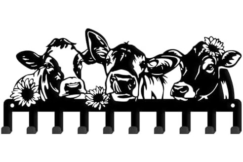 SUPERDANT Colgador de llaves divertido vacas y flores lindas vacas 10 ganchos negro llavero organizador animales gancho de pared para colgar llaves colgador para la pared en casa