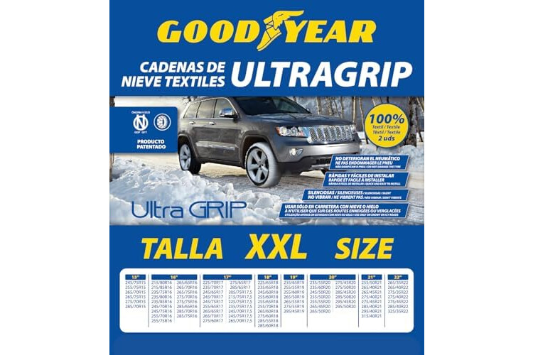 Goodyear Juego de 2 Cadenas de Nieve Textiles para Coche Goodyear Ultra GRIP Talla XXL, Textil