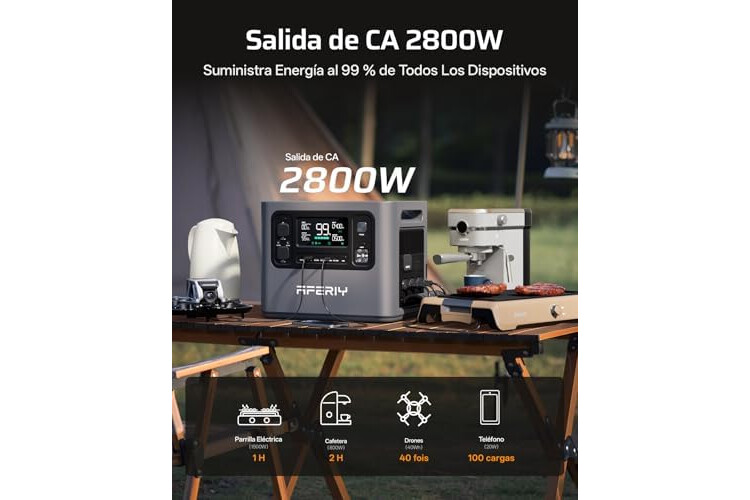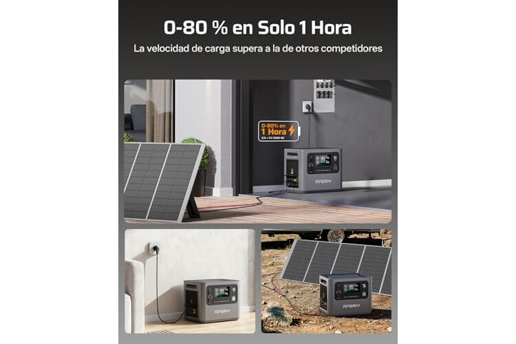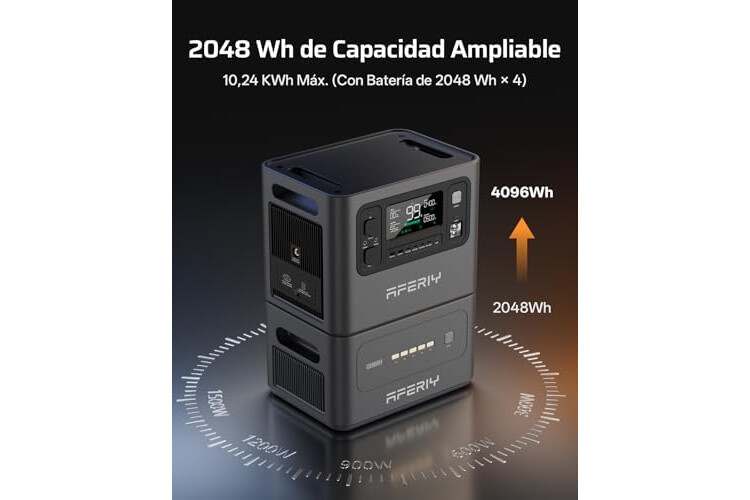 AFERIY 2800 W Estacion De Energia Portatil, 2048 Wh Generador Electrico Solar, Extensible A 10240 Wh, Carga Rápida 1,5 H, Power Station Para Camping Hogar Viajes Emergencias