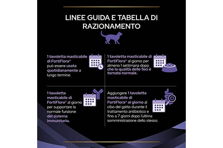 • Purina Pro Plan Fortiflora Feline es un complemento alimenticio para gatos y gatitos.