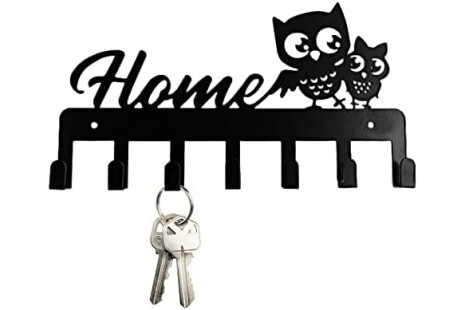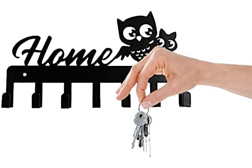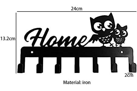 Colgador de llaves Pared Cuelga en Metal, Guardallaves Cuelga Búho Decorativo Negro Perchero de llaves, Ganchos de Metal 9 Ganchos para Cocina, Puerta de Casa (Hogar)