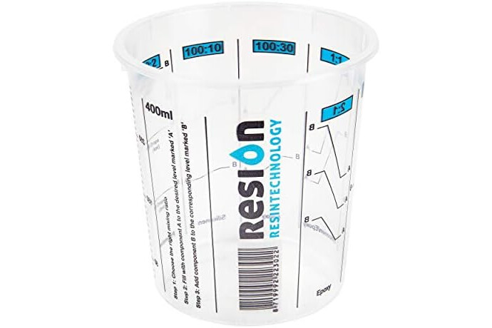 RESION 25 vasos mezcladores de pintura | 400 ml | color, epoxi, poliéster | con relación de mezcla clara en la taza medidora