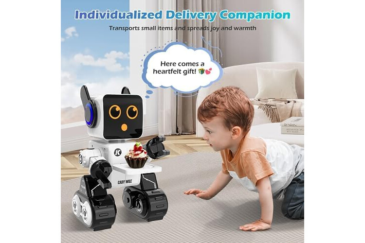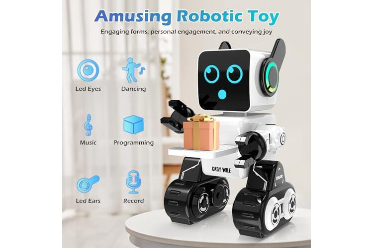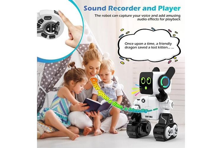 Embárcate en Infinitas Aventuras - ¡Deja volar la imaginación de tu hijo con nuestro juguete robot controlado a distancia! Este fiel compañero responde con entusiasmo a cada orden, mostrando movimientos cautivadores como deslizarse, caminar, bailar y cantar. Con ojos brillantes de LED estilo marciano, agrega un toque de encanto futurista.