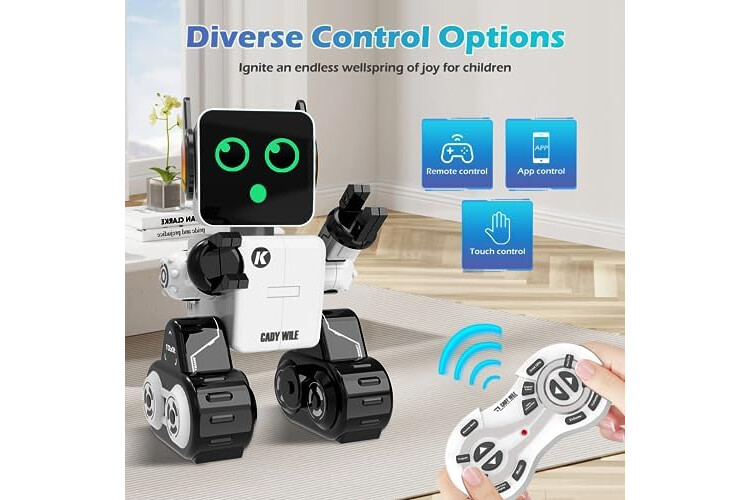 Cuatro Modos de Control - Nuestro juguete robot presenta cuatro emocionantes opciones de control: control remoto, control mediante la aplicación, modos interactivos de sonido y táctil. Cambia sin problemas entre ellos para disfrutar de diversión e interacción sin fin. Ya sea que tu hijo prefiera el juego práctico o el control tecnológico, ¡este juguete robot lo tiene todo! Nota: El robot solo puede hablar inglés y no admite cambiar el idioma