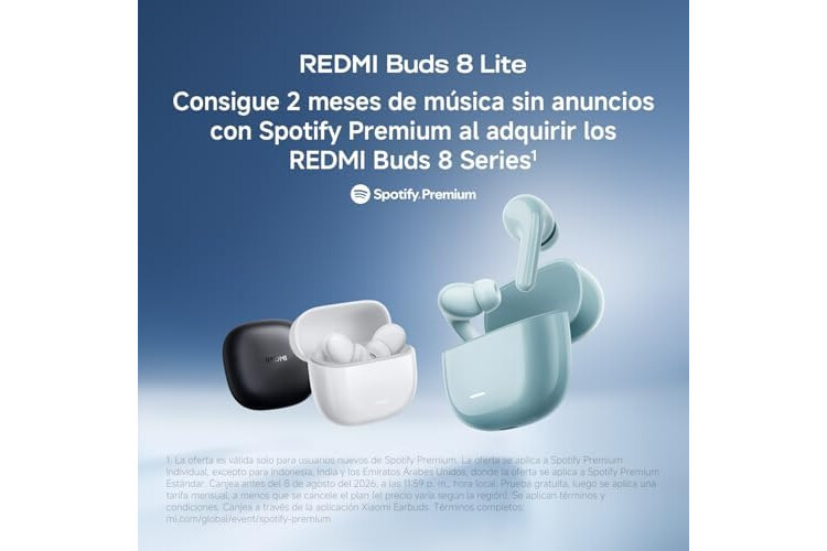Driver de 12,4 mm con diafragma de titanio para un sonido detallado Los REDMI Buds 8 Lite incorporan un driver de gran t...