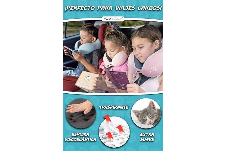Descanso Seguro y Confortable: La espuma viscoelástica se adapta al cuello del niño, aliviando la tensión cervical y proporcionando un soporte perfecto.
