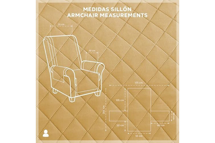 📏 Medidas Disponibles: Compatible con sofás de 1 plaza (55 cm de ancho sin contar reposabrazos), ideal para un ajuste perfecto y cómodo.