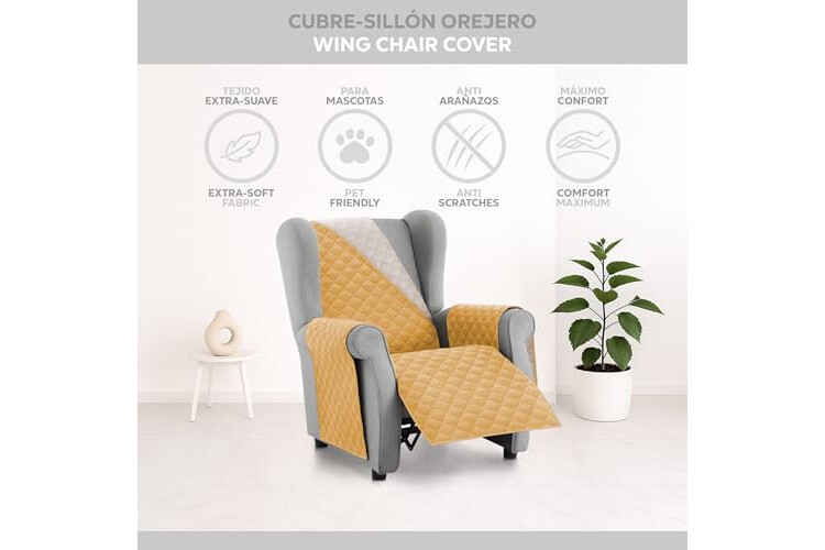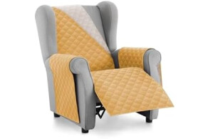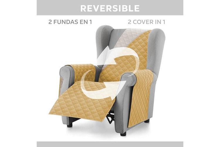 Textilhome Funda Cubre Sofá Malu - 1 Plaza - Funda de Sillón Relax y Orejero Reversible, Protector de Arañazos para Sofás Acolchado. Color Mostaza