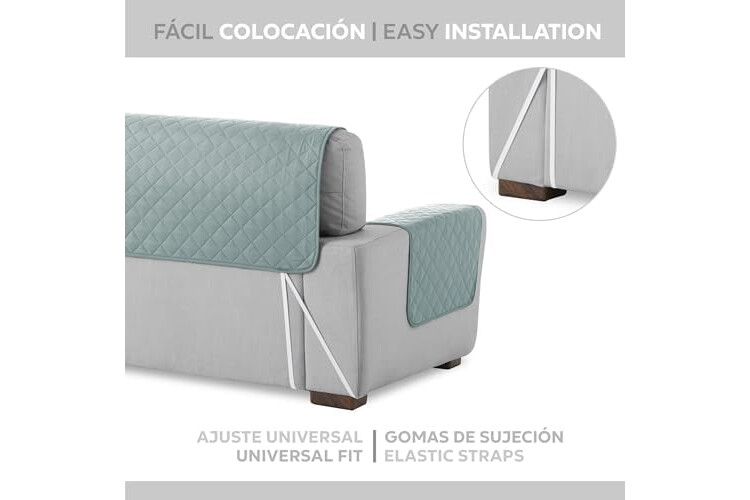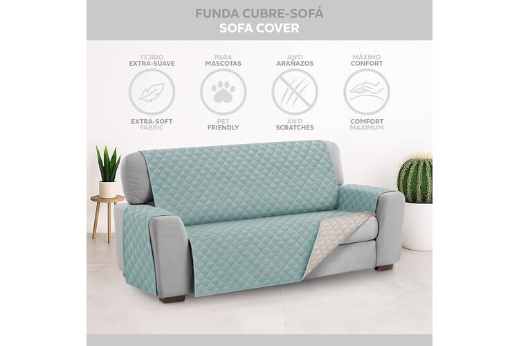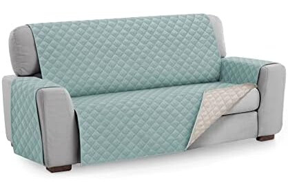 Textilhome Funda Cubre Sofá Malu, Sofas de 3 Plazas(160 cm), Protector Acolchado Reversible Universal, Ideal para Mascotas, Resistente a Arañazos y Pelos, Color Agumarina