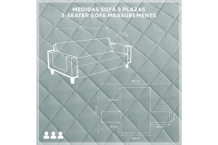 📏 Medidas Disponibles: Compatible con sofás de 3 plazas (160 cm de ancho sin contar reposabrazos), ideal para un ajuste perfecto y cómodo.