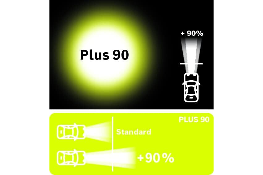 Bosch H7 Plus 90, Lampadina Alogena para Faro Delantero, 12 V 55 W, 90% Más Luz - Casquillo Tipo PX26d - Recambio de Luz para Coche, Paquete de 2 Lámpara