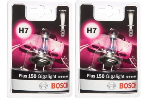 Bosch H7 Plus 150 Gigalight, Lampadina Alogena para Faros Delanteros 12 V 55 W, 150% Más Luz - Casquillo Tipo PX26d - Recambio de Luces para Coche, Paquete de 2 Lámpara