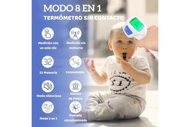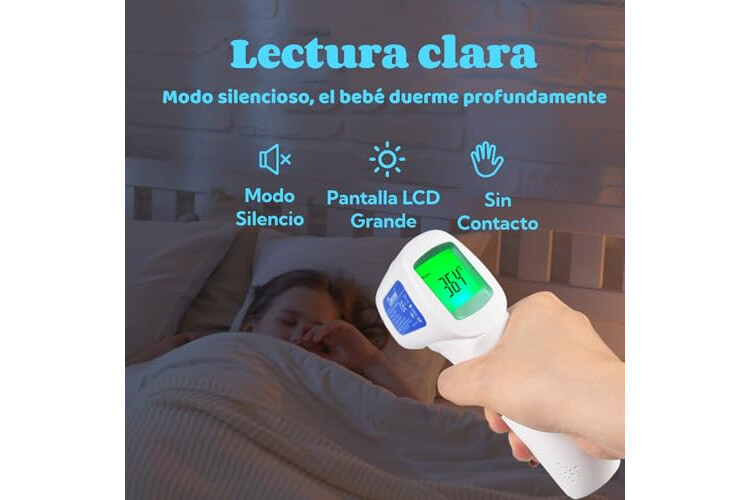 ✅【Termómetro de infrarrojos 3 en 1】El termómetro de infrarrojos 3 en 1 no sólo puede medir la temperatura corporal, sino también determinar la temperatura de la leche, los alimentos y la habitación.La pantalla LCD más grande con luz de fondo hace que las lecturas sigan siendo visibles por la noche.