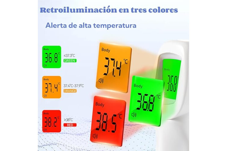 ✅【Alarma de fiebre】Termómetro neumático con alarma de fiebre: Cuando la temperatura corporal es normal, la pantalla LCD es verde. Naranja significa fiebre leve y rojo significa fiebre alta. La retroiluminación muestra el color rojo y una alarma sonora cuando la temperatura corporal supera los 38 °C