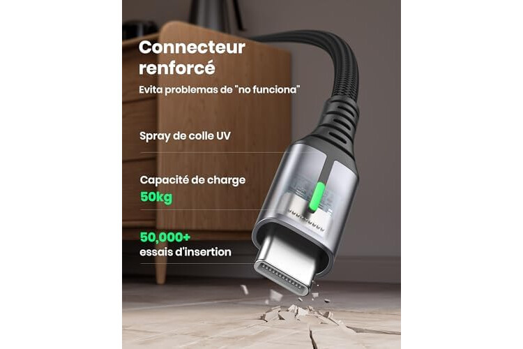 Un cable para toda la vida: un revestimiento trenzado exclusivo FLYWEAVE y juntas flexibles con una vida útil asombrosa de 45,000 veces y un conector 3D de precisión en aleación de...