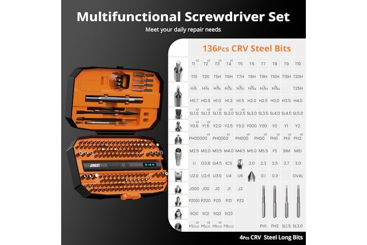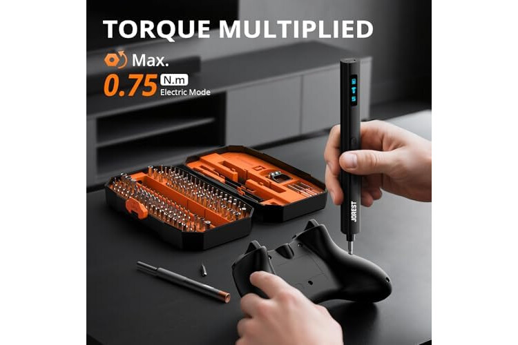 【Eficiente y Conveniente】JOREST juego de tornillos eléctricos de precisión tiene 5 engranajes ajustables, diferentes engranajes corresponden a diferentes pares de torsión. WARM TIPS: Debido a que la mayoría de los tornillos se fijan con pegamento en la fábrica, se recomienda aflojar los tornillos en el modo manual por primera vez, y luego cambiar al modo eléctrico para quitar los tornillos de manera eficiente.