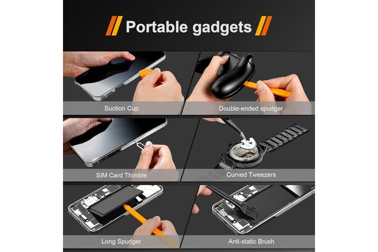 【Destornilladores precision kit】-- El juego de destornilladores de 40 piezas tiene 30 puntas de destornillador que son philips PH000 (+1.2) PH000 (+1.5) PH00 (+2.0) PH0 (+3.0) PH1 (+4.0), -0.8 -1.2 -1.5 -2.5 -3.0, torx T1 T2 T3 T4 T5, TR6 TR7 TR8 TR9 TR10 TR15 TR20, triple Y000(Y0.6) Y00(Y1.5) Y0(Y2.5) Y1(Y3.0), P2(0.8) P5(1.2) P6(1.5) , MID 2.5, con mango de destornillador, spudger doble, spudger largo, spudger triangular*3, pinzas, cepillo de limpieza y ventosa con dedal para tarjeta SIM.