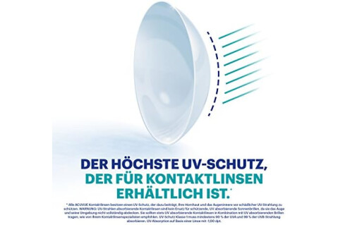 • Todas las lentillas ACUVUE filtran más del 98% de rayos UVB y del 85% de los rayos UVA*.