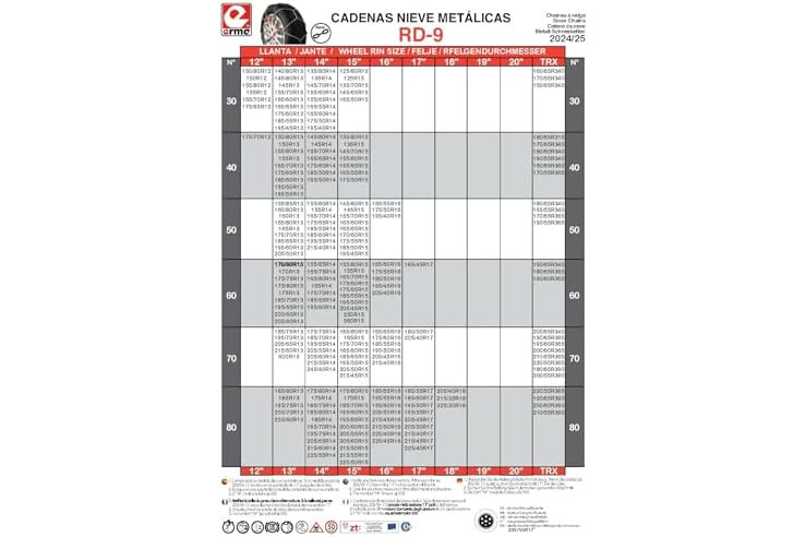 RD9 - Cadenas de nieve metálicas RD9 mm talla Nº 120