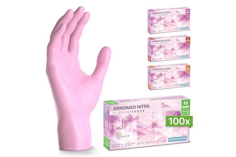 100x ARNOMED® Guantes nitrilo talla M Rosa, Guantes desechables quirurgicos y laboratorio, Luvas nitrilo descartaveis sin polvo y látex, Manoplas nitrilo en XS, S, M, L, XL, XXL