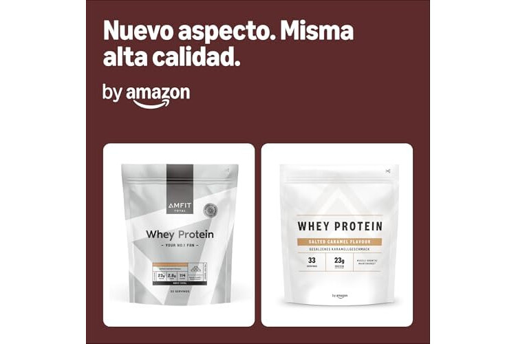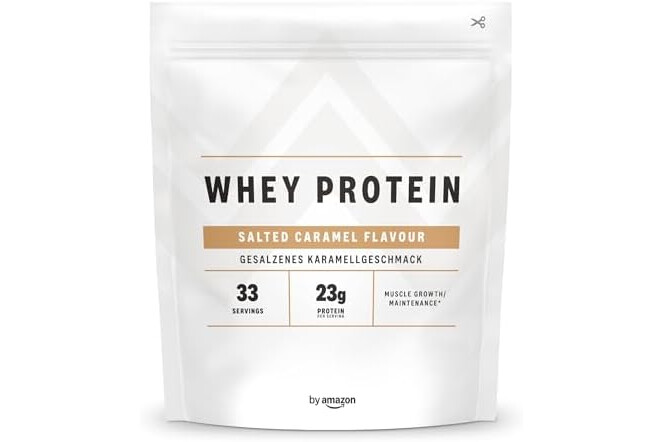 by Amazon - Nutrition Proteína de Suero Lácteo, Sabor Caramelo y Sal, 1 kg (Paquete de 1), (Anteriormente Marca AMFIT, Mismo Producto)