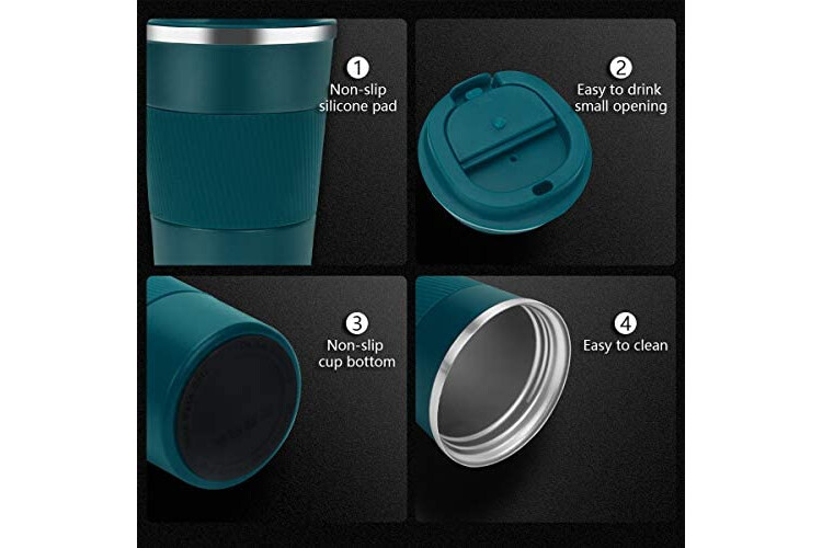 Taza de café de acero inoxidable de doble capa: la taza de café aislada está hecha de acero inoxidable de alta calidad, es resistente y duradera, y mantiene la bebida sin olor peculiar. La tapa desmontable hace que sea muy fácil mantener tu nueva taza de viaje limpia e higiénica.