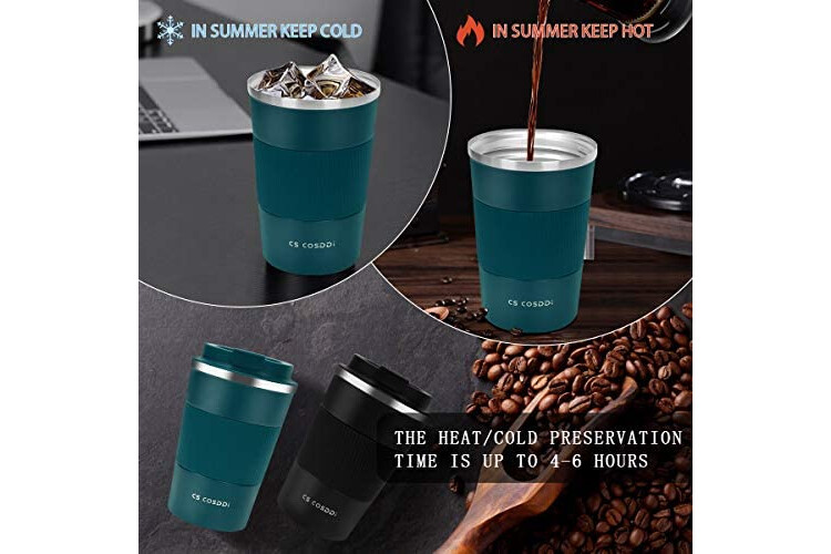 【Mantiene el calor y el frío durante horas】Taza de viaje aislada CS COSDDI para una máxima retención de temperatura, mantiene la bebida caliente o helada hasta 6 horas. Vierte café caliente o helado en tu taza de viaje de café y siéntete energizado durante el día.