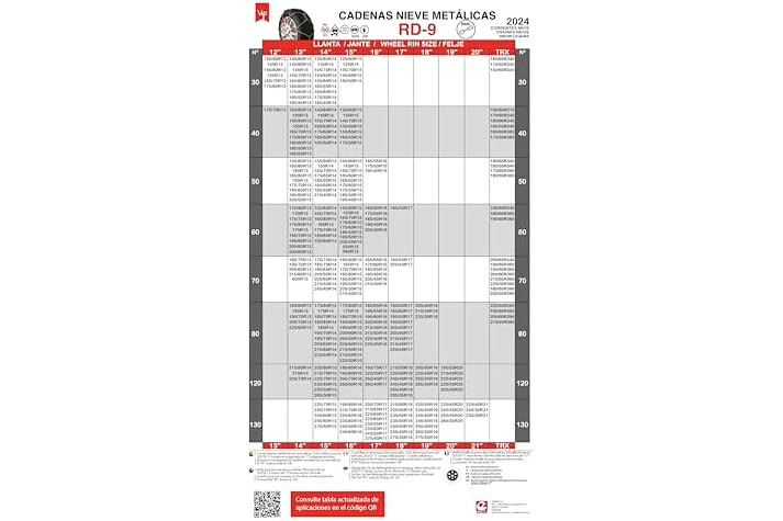 RD9 - Cadenas de nieve metálicas RD9 mm, talla Nº 130, set 2 uds, guantes incluidos