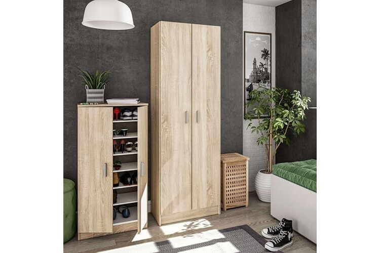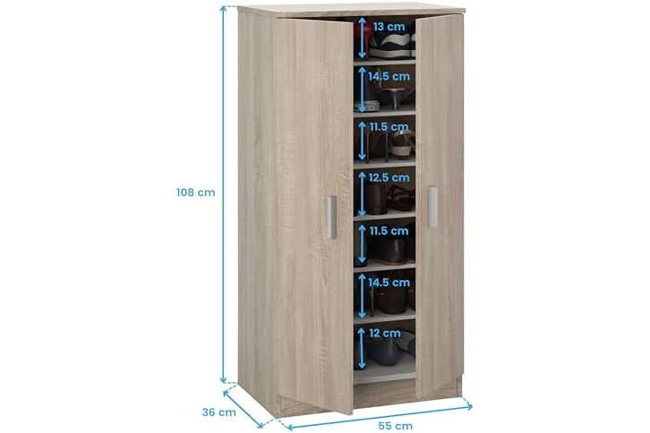 Habitdesign Mueble Zapatero Dos Puertas, Mueble Auxiliar, Modelo Basic, Acabado en Roble Canadian, Medidas: 55 cm (Ancho) x 108 cm (Alto) x 36 cm (Fondo)