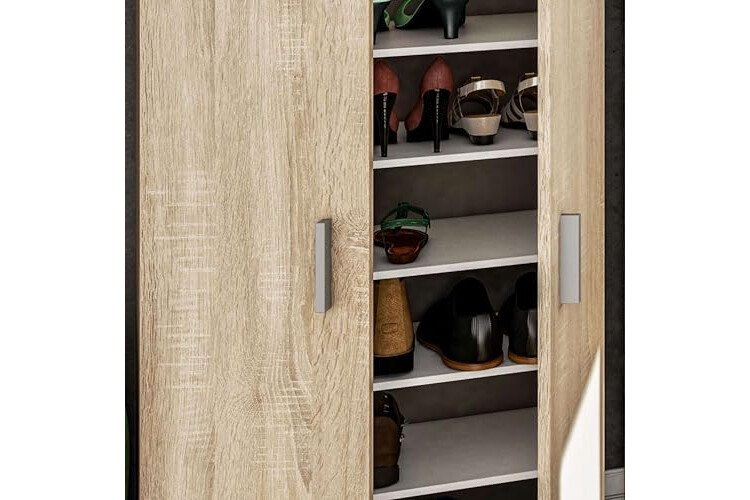 Armario zapatero con 6 baldas, ideal para almacenar zapatos o todo tipo de objetos. Los estantes se pueden extraer para huecos mayores. Incluye tiradores en ABS. Interior en color blanco.