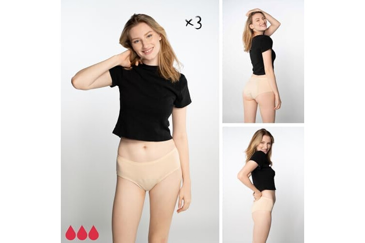 Bragas Menstruales absorbentes = 2 tampones - Lavables - Algodón - Ecológicas - Menstruación - Bragas de reglas Flujo Periódico de moderado a abundante - Incontinencia - Protección de Fugas de Orina