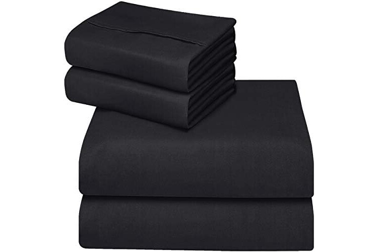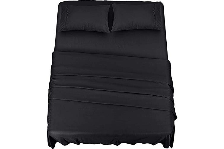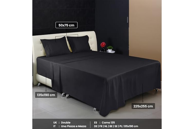 Utopia Bedding Juego de Sabanas 4 Piezas 135x190 - Poliéster Microfibra Cepillada - Oeko-Tex Certificado - Sábana Bajera, Sábana Plana y 2 Fundas de Almohada 50x75 (Cama 135, Negro)