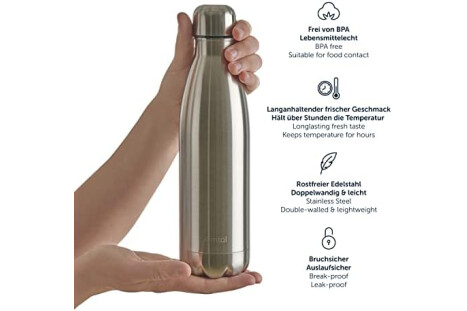 ACERO INOXIDABLE: La botella agua acero inoxidable Blumtal está fabricada en robusto acero inoxidable que especialmente duradero. La botella termica es resistente y apta para alimentos.
