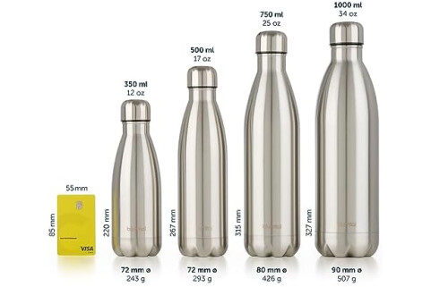 AISLAMIENTO DOBLE PARED: La doble pared de la cantimplora acero inoxidable mantiene bebidas frías o calientes de forma fiable. La botella acero inoxidable es adecuada para té, café y bebidas frías.