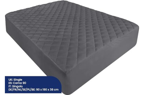 Utopia Bedding Protector de colchón Acolchado 90x190 cm, Microfibra - Transpirable, Funda para colchon estira hasta 38 cm de Profundidad (Cama 90, Gris)