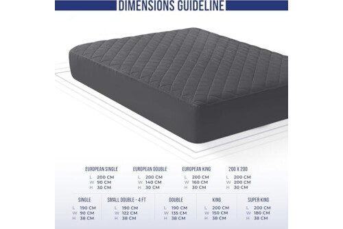 El protector de colchón acolchado mide 90 x 190 cm; El faldón se estira para adaptarse a un colchón de hasta 38 cm de profundidad; (NO ES IMPERMEABLE)
