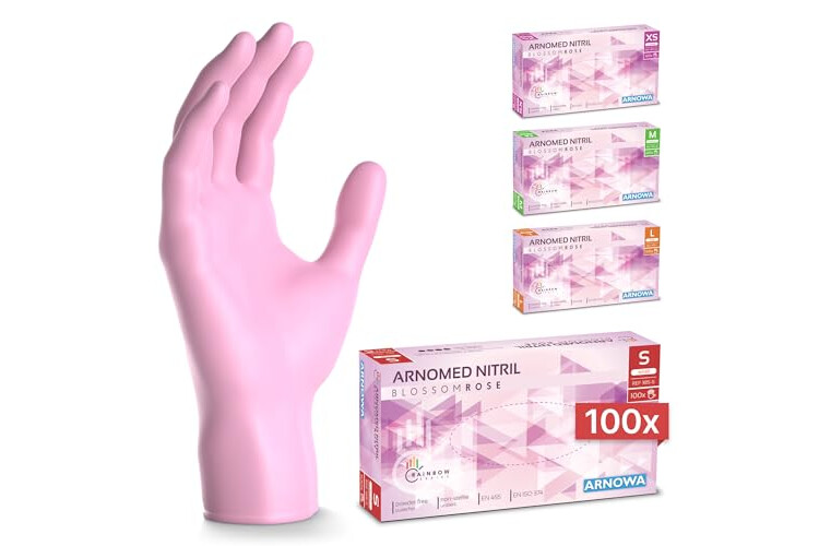 100x ARNOMED® Guantes nitrilo talla S Rosa, Guantes desechables quirurgicos y laboratorio, Luvas nitrilo descartaveis sin polvo y látex, Manoplas nitrilo en XS, S, M, L, XL, XXL