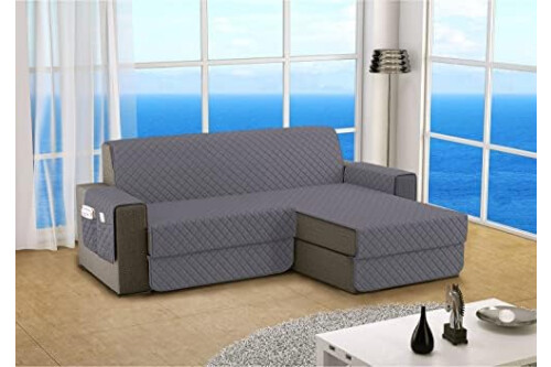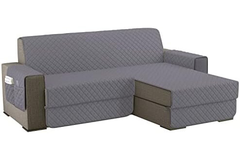 sevi's Funda Sofa Chaise Long 2 Plazas Impermeable, Izquierdo/Derecho Reversible Antideslizante, Protector Sofa con Bolsillos, Antiarañazos para Mascotas, Oeko-Tex, Lavable -Gris