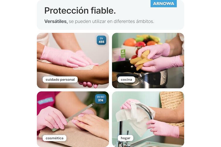 PROTECCIÓN FIABLE ✓ Estos guantes de nitrilo talla L rosa cumplen las normas más estrictas (EN 455 y EN 374) y ofrecen protección frente a virus, productos químicos, etc., tanto para labores de higiene y limpieza en el hogar como en el ámbito sanitario profesional.