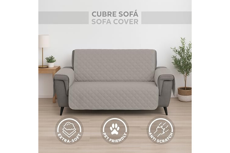 Textilhome Funda Sofá Circus - 3 Plazas (160 cm), Cubre Sofá Protector Acolchado Reversible Universal, Lavable y Resistente contra Manchas, Arañazos y Desgaste, Ideal para Mascotas – Color Marfil